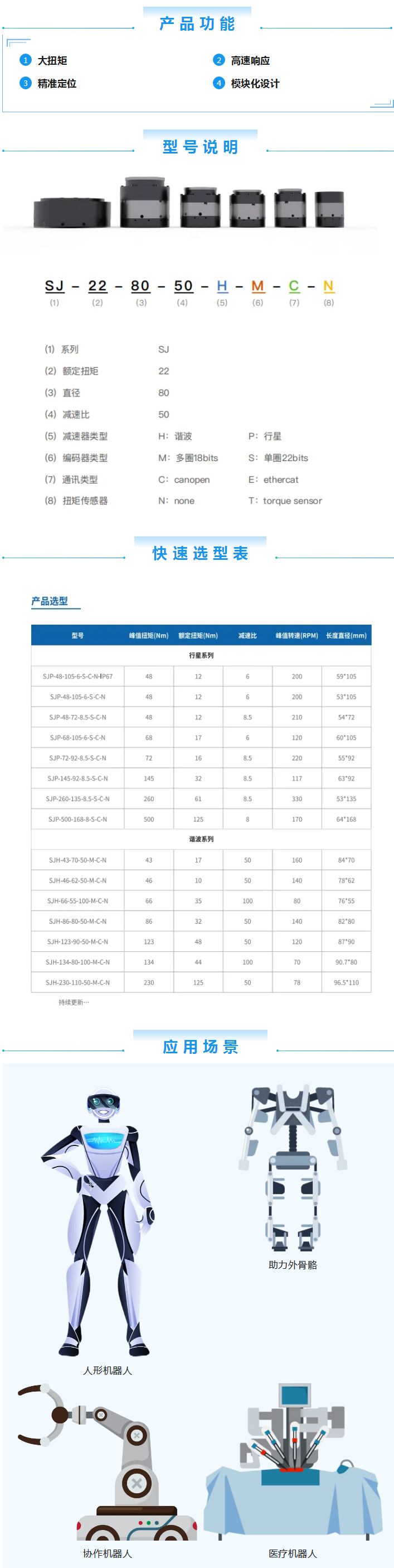 SRI-SJ机器人一体化关节模组是由银河集团(galaxy)(集团)机器人有限公司官网采用模块化设计、核心零部件自主研发的。攻克扭矩力控技术、非线性摩擦力辨识、实时电机内阻检测、高精度力控采样、外部负载惯量辨识等核心技术,精心打造多模块化、低成本、轻量化的关节模组。经济实用,可广泛应用于各种商业服务定制化场景。