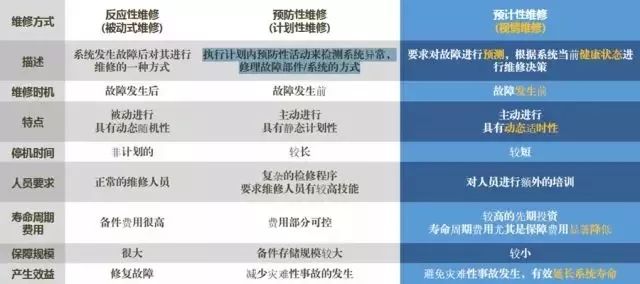 三种维修方式的比较